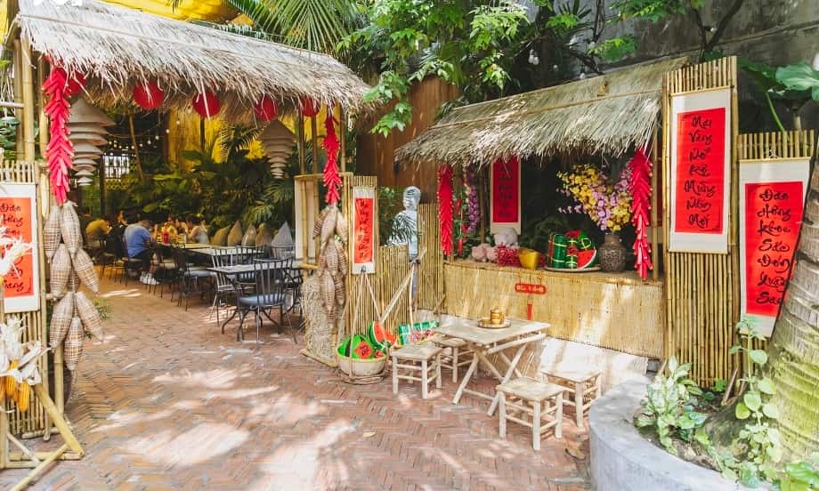 Không gian: Một chút nhạc Xuân vui tươi (đừng quá ồn), vài cành đào/mai tươi thắm sẽ giữ chân khách lâu hơn.